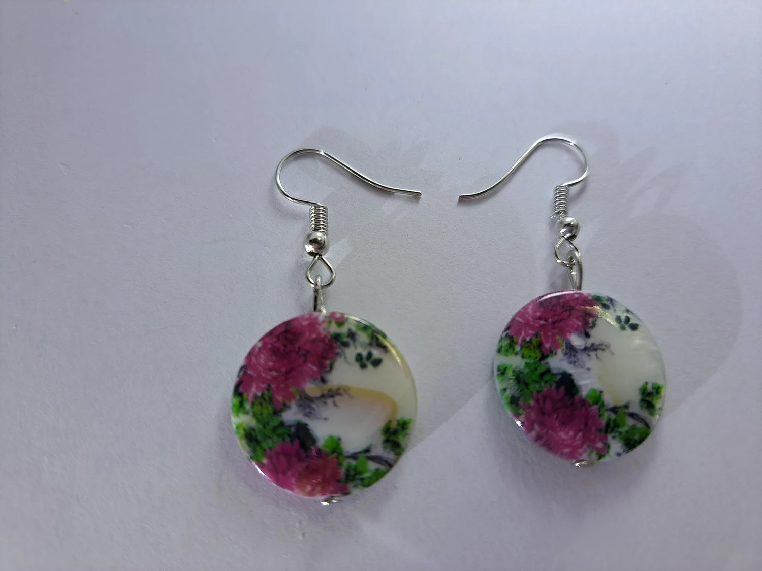 Cercei din scoică sidef cu flori roz