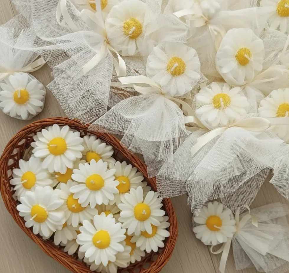 Design: Formă delicată de margaretă, finisată manual, ideală pentru botezuri, nunți sau ca mici cadouri pentru cei dragi.