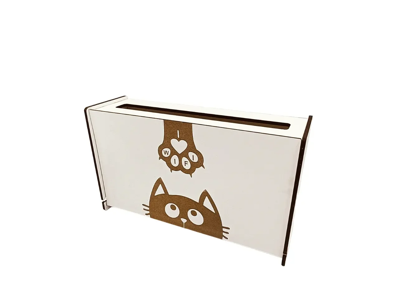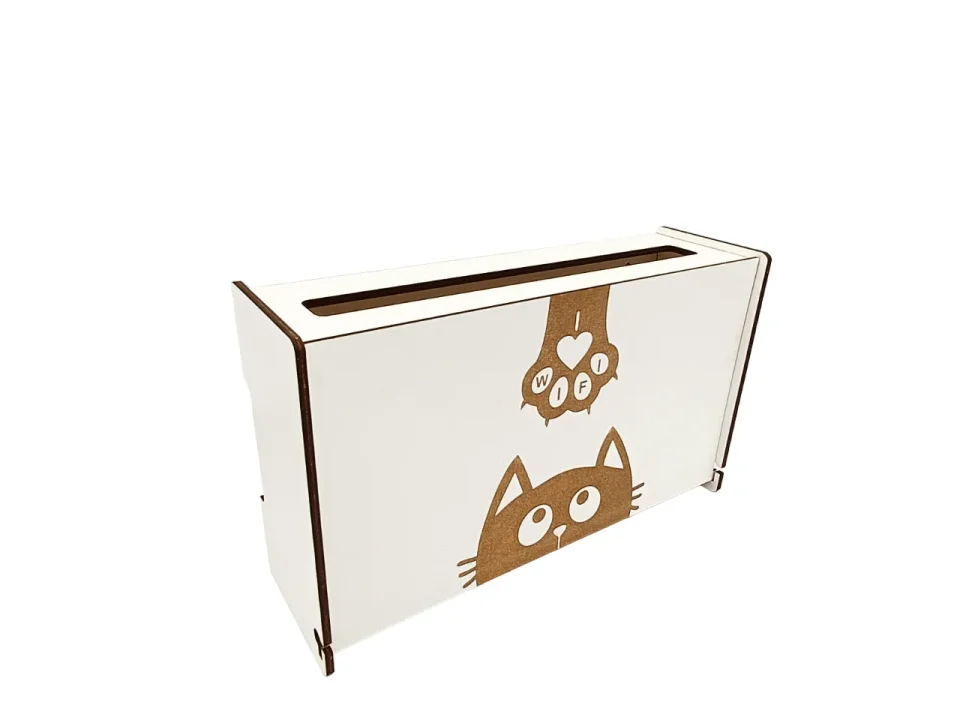 Raft Suport pentru Router Wireless, WoodMag pentru mascare fire si echipamente WI-FI, posibilitate montare pe perete, culoare alb model Cat Love