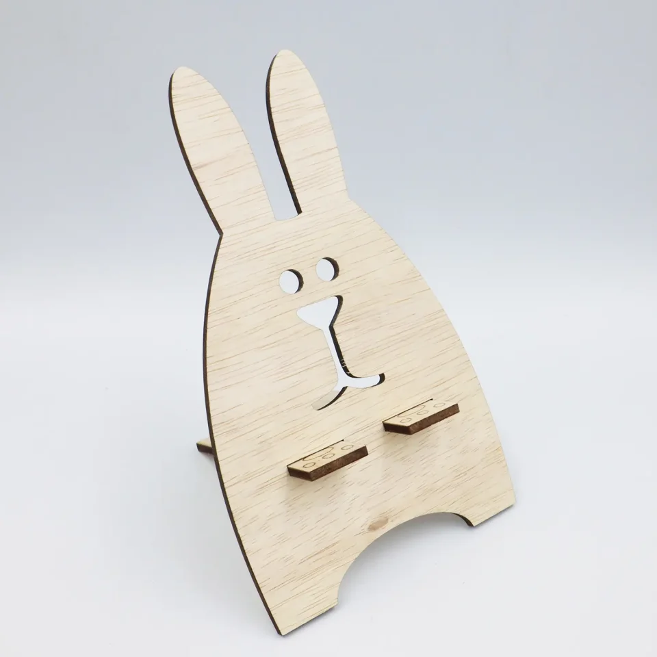 Suport universal de birou pentru telefon WoodMag, Model Iepuras,PD07, dimensiune 20x12 cm