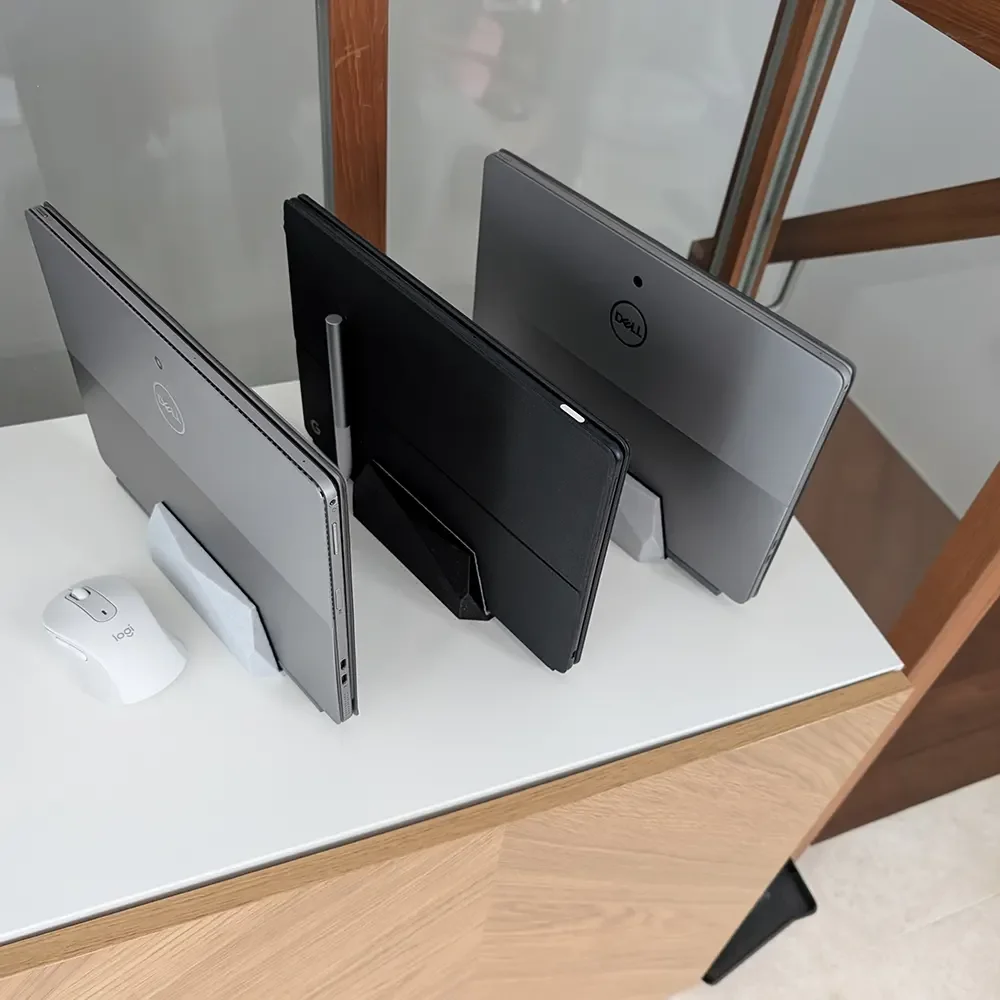 Fie că folosești un MacBook, un ultrabook sau un alt laptop slim, suportul îl menține stabil și protejat în poziție verticală, economisind spațiu pe birou și asigurând o mai bună ventilație.