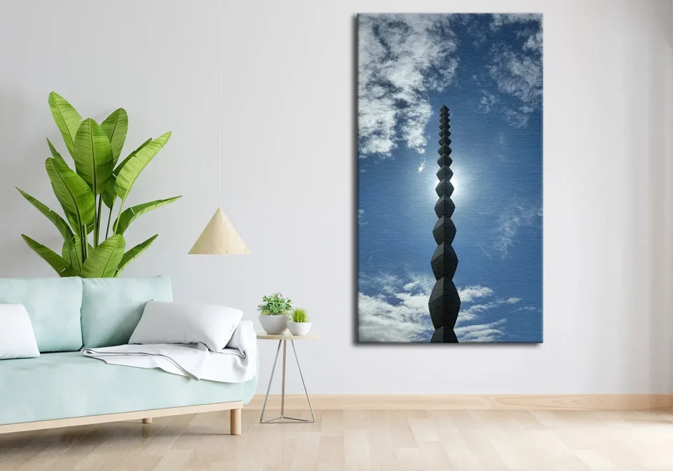 Lumina naturală poziționată central accentuează verticalitatea lucrării și creează un efect vizual puternic, ideal pentru spații contemporane. Tabloul este printat pe pânză canvas premium, oferind claritate, profunzime și un aspect elegant, potrivit pentru decoruri moderne sau industriale.